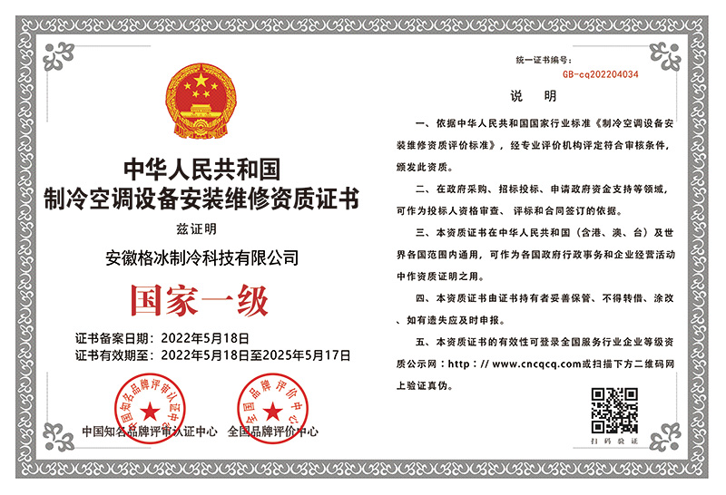 制冷空調(diào)設(shè)備安裝維修資格證書